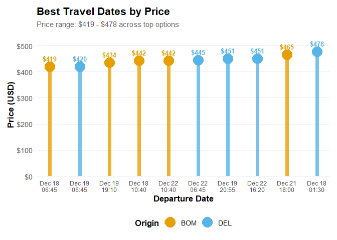 The package includes plotting functions to visualize price trends and best dates: